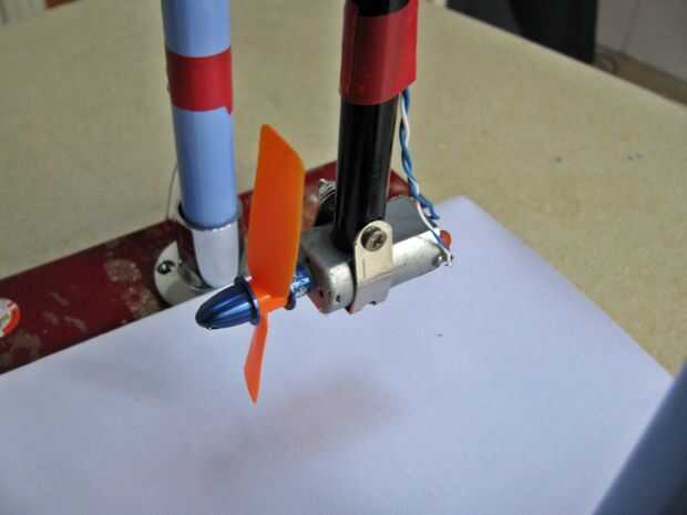 3ª Foto: primer plano del motor y hélice. Usé una lipo de 500mAh 2S batería para alimentar el motor (7,4 voltios).