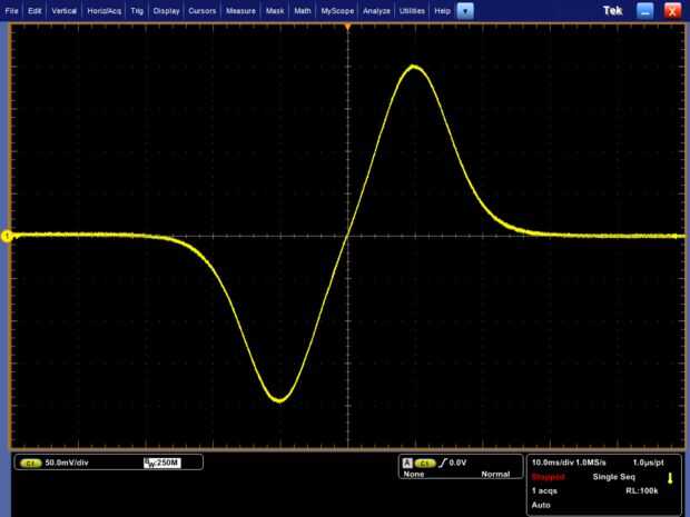 Imaginar un imán pasa sobre una bobina. Según ley de Faradey de inducción, la tensión inducida en la bobina es proporcional a la tasa de cambio del flujo magnético a través de la bobina. Sin entrar en las ecuaciones, la tensión inducida dependerá del número de vueltas en la bobina, la velocidad del imán, densidad de flujo del imán ("fuerza") como el tamaño y la forma de la bobina. El voltaje inducido será bastante mucho se parecen a la que se muestra arriba (o invertida, dependiendo de la polaridad). La parte primera, en este caso negativa, es inducida mientras el campo magnético entra en la bobina (aumentos de flujo magnético) y la parte segunda, en este caso positiva, como el campo está dejando la bobina (disminuciones de flujo magnético). Cuando el imán está justo encima de la bobina el voltaje inducido es cero, el flujo magnético es constante, ya que el imán no se viene ni va, y la tasa de cambio o derivado del campo es cero.