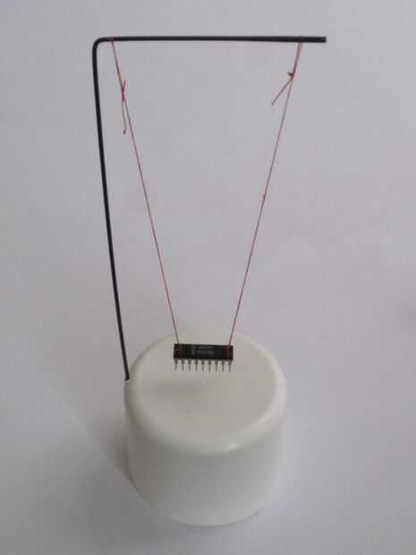 Aquí es un ejemplo cómo completar el péndulo. Usando una tapa de plástico, un alambre, un hilo de algodón y un IC hacen una miniatura del oscilación. Colocar el circuito dentro de la caja, pegar la bobina debajo de la parte superior de la tapa y corte un orificio para la alimentación. Utilizando algunos LEDs, diodos y resistencias hacen una pequeña figura, dan un par de pies magnéticos y colocar en el columpio. Ajustar la longitud del hilo de rosca y doblar las piernas de la figura para colocar los imanes justo por encima de la bobina de cuadro. Conecte la energía en dan la figura un pequeño empujón y disfruta el movimiento perpetuo! En caso de que no es trabajo inversa la bobina o la polaridad del imán y darle otra oportunidad o jugar con los valores umbral y PUSH_TIME como se describe arriba.