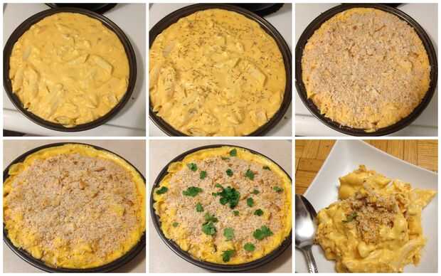 3. esparcir las migas de pan sobre la mezcla y hornear de 30 a 45 minutos.