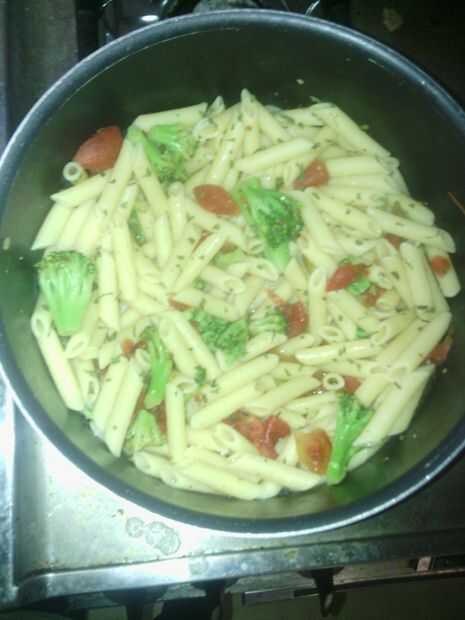 Comience a cocinar la pasta según el paquete. Unos 7 minutos antes de la pasta se hace, calor 1/4 de taza de mantequilla en un sartén en medio. Cuando la mantequilla esté completamente derretida y caliente, aumentar el calor a medio-alto y agregue 8 onzas de brócoli congelado y el calor por unos 2 minutos. Añadir la lata de tomate, tapa y a fuego lento durante 2-3 minutos. Agregar los condimentos a gusto y revolver. Antes de drenar la pasta reserva 2 tazas de agua de la pasta y reservar. Escurrir la pasta, devolver la pasta a la olla y añadir el agua de la pasta junto con la salsa de brócoli. Mezclar bien y servir.