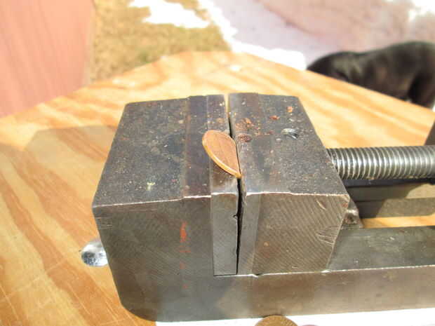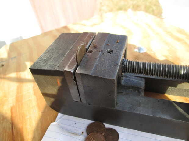 Voltear la moneda y puse aproximadamente 1/3 de la moneda en la mordaza y apriete.