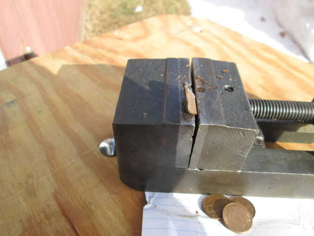 Puse aproximadamente 1/3 de la moneda en la mordaza y apriete