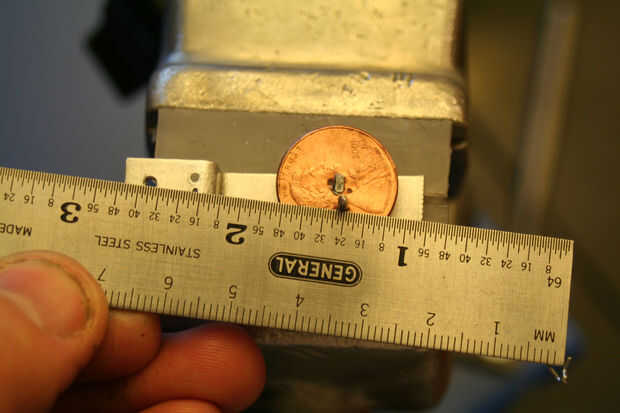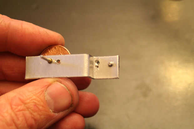 Marcar donde quieres el cilindro para fijar a la placa de la válvula. Todo lo demás se medirá de este agujero. Con los separadores, mida la distancia desde el centro del agujero del pivote del cilindro hasta el centro del agujero de aire. Transferirlo a la placa de la válvula, trazando un arco como se muestra en las fotos.