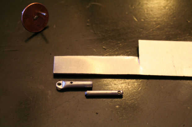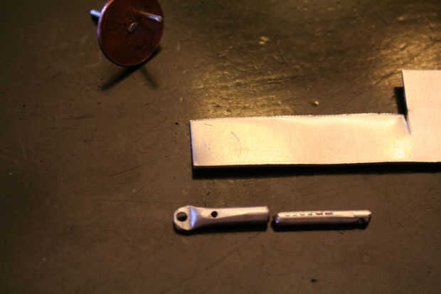 El orificio para el cigüeñal no puede ser demasiado lejos del agujero del pivote del cilindro, o de lo contrario el pistón caerá fuera del cilindro. Estimación mínimo que seguirá siendo 1/4 del pistón en el cilindro con el perno de la manivela es como en la parte inferior de la carrera, o lo más lejos posible del cilindro. La marca donde debe estar el agujero del centro. Ahora puede perforar el agujero del pivote y el orificio de la manivela.