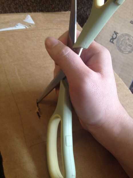 Tienes que cortar una abertura que es menor de lo que remonta por lo que no se caiga la imagen a través del marco. Juzgar por su preferencia de lo mucho de la imagen que desea tener mostrando al juez cuánto desea cortar. Ayudó a utilizar una hoja de las tijeras para cortar primero en la caja (ver foto arriba). He podido utilizar las tijeras de la forma que se supone que mantenga tijeras luego después de haber hecho una abertura con una hoja de las tijeras.