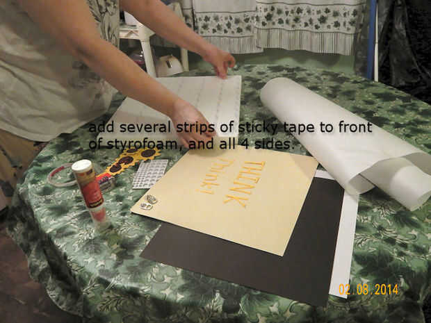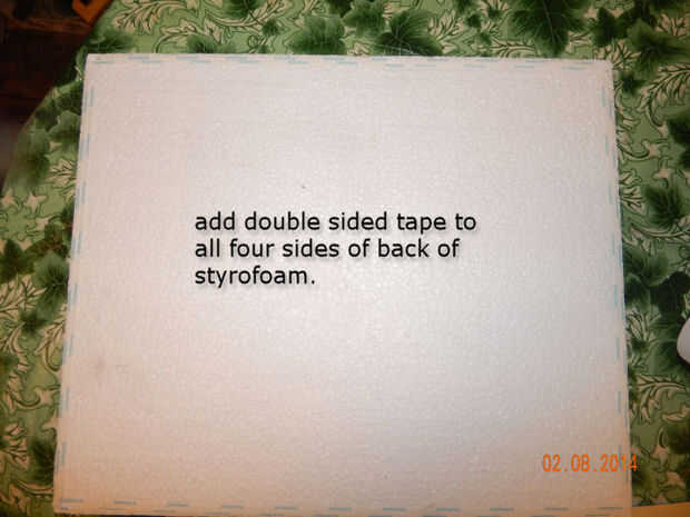 Coloque unas tiras de cinta de doble cara para las espuma de poliestireno frente 4 tiras en la espalda y los 4 lados.