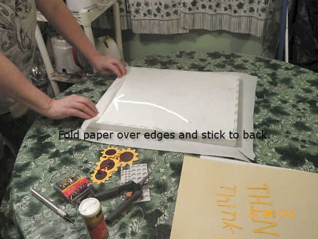 Doble papel sobre los lados pegar bien, retire el papel de la cinta en la parte posterior y pegar el papel hacia abajo.