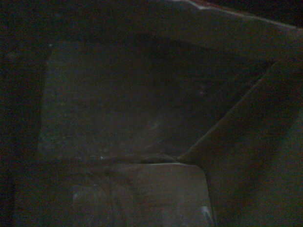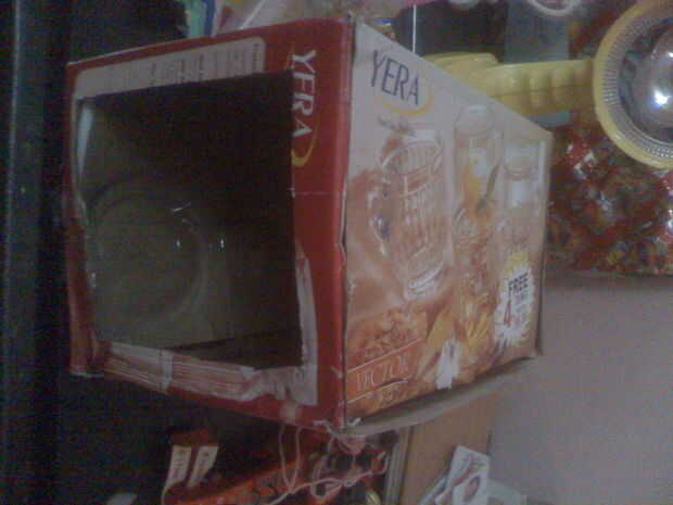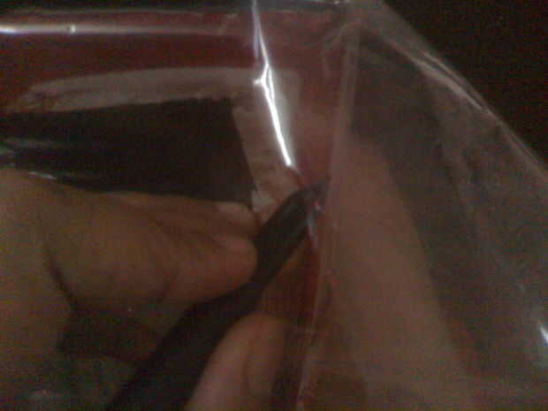 Corte un agujero cuadrado en la caja dejando unos 2 cm de la frontera Asegúrese de que el interior de la caja es estrecha de aire que no sea el corte de agujero cuadrado Cubrir el cole con el papel cellopane de adentro