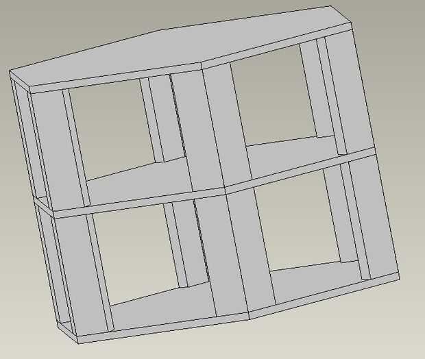 Colocar estos requerirán cierta delicadeza desde pila de 2 x 4 directamente sobre la otra. Por supuesto podría colocar para ponerlos junto con el pegamento, ya que siempre se cargará esta porción en compresión simple que puede ser suficiente. Tornillos de ángulo me daría un poco de paz de la mente aunque. Perforar la parte inferior (es simétrico así que elegir un lado y quedarte con él) en un ligero ángulo a través de la madera contrachapada en el 2 x 4 cuando otra pieza evita ir en recto. Esto se verá mejor hecho por dentro así que deja la pieza del fondo hasta después de terminar esta parte.