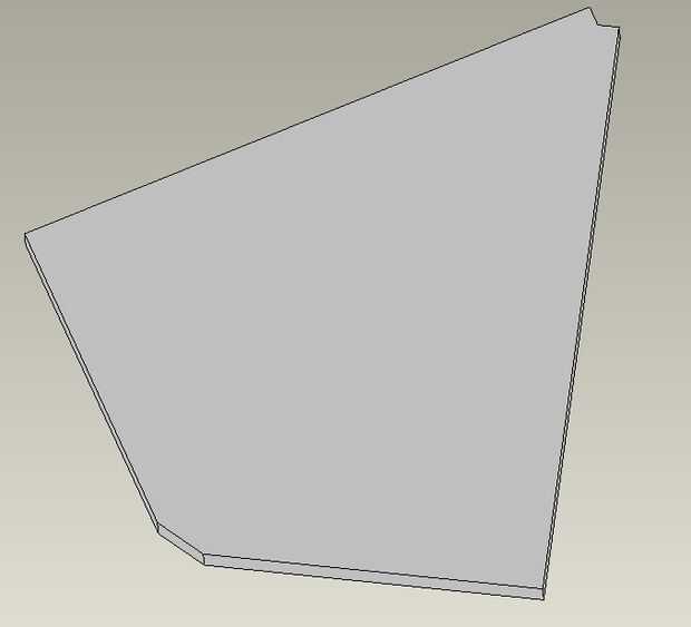 Finalmente seis piezas se colocan hacia abajo para cubrir las esquinas de los ajustes de lugar. Estas piezas deben ser 6 irregulares cuadriláteros con lados 11,4"-11.4"-6.6 "-6.6" con la muesca de 120 grados en el extremo largo y esquina del ajuste a corto. Sin embargo debe colocar un pedazo de papel y cierre las dos tapas. Recortar papel con tijeras hasta que ajuste perfectamente alrededor de la esquina y luego trazar los lados restantes y les recorte. Tomar esta plantilla y cortar la pieza. Si la configuración del lugar apagado hacerlo otra vez para cada uno de ellos.