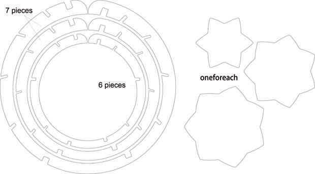 Usted puede también poner tres estrellas fuerte dentro del círculo para guardar el material. En este paso tienes que cortar la hoja de acrílico de 3mm. Cortar archivo de adjunto "peony.pdf" en varias piezas con máquina de corte láser. Será grande si usted puede encontrar un FABLAB cerca donde usted está. Ellos brindan un corte de láser baratos o incluso gratis para sus necesidades. Otra cosa puede costar un poco más alto. Re común para cortar más de lo que usted necesita como copia de seguridad desde el acrílico es altamente frágil.