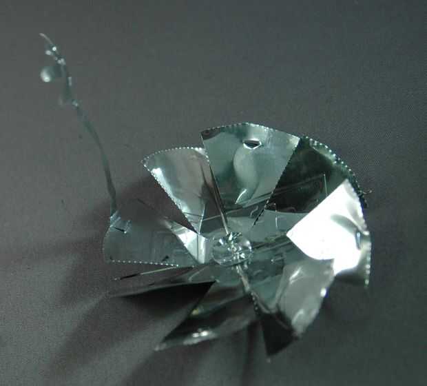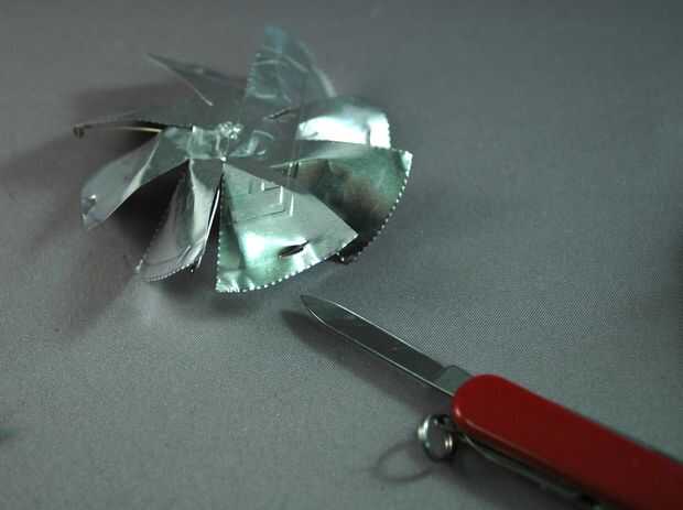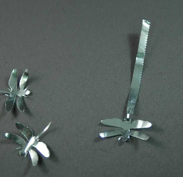 A continuación, perfora pequeños agujeros en los extremos de las tiras con un cuchillo y alimenta las colas de libélula en los agujeros. Flexión sobre los hizo alojarte, y conservan un poco de movimiento.