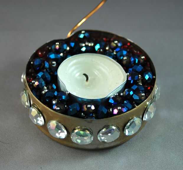 Para Plan A, había comprado pulseras de cristal para desarmar y utilizar las cuentas como cuelga del carrusel. Cuando desechado ese plan, tenía a las pulseras. Éste parece encantador con el vidrio rojo alrededor de la vela.
