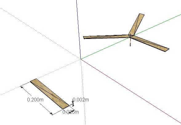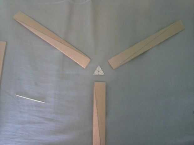 Las cuchillas de mi modelo de girar hacia la derecha mirando desde arriba hacia abajo pero tuyo puede hacer girar la otra manera. Sólo asegúrese de que todas las hojas son exactamente iguales, no hacen uno una imagen espejo de otra o no gira correctamente. Para permitir que las cuchillas al girar, debe dar una especie de "twist". Para mantener este giro el mismo en todas las tres hojas, dibuje la misma línea diagonal en cada hoja (como se muestra en la figura 2).