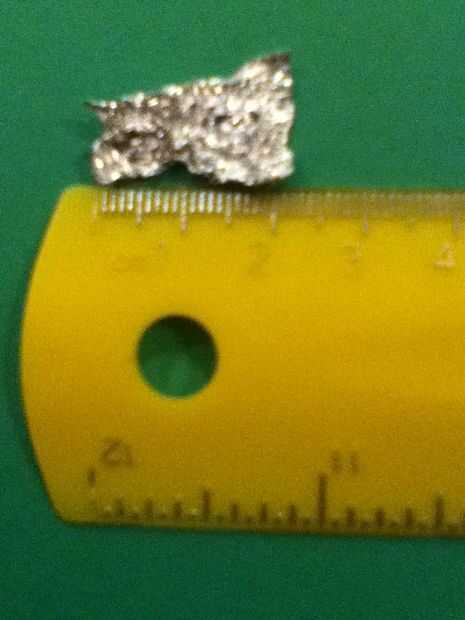 Rasgar una paz de aluminio papel de 2 cm de largo y 1,5 cm de ancho. Nota: se pueden utilizar más y más tiras de papel por una punta más gruesa.