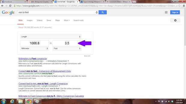 Para lograr este aumento, volver a la página de conversión de Google y el tipo en la medida de pie, a ver que nos da una medición milimétrica de 1066,8 mm. Esta es la medida que necesitamos utilizar para escalar nuestra pieza.