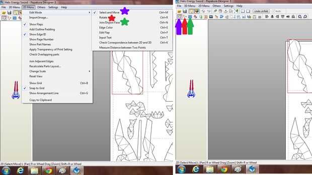 Puede acceder a éstos en la barra de herramientas o en el menú, en modo de edición desplegable 2D.