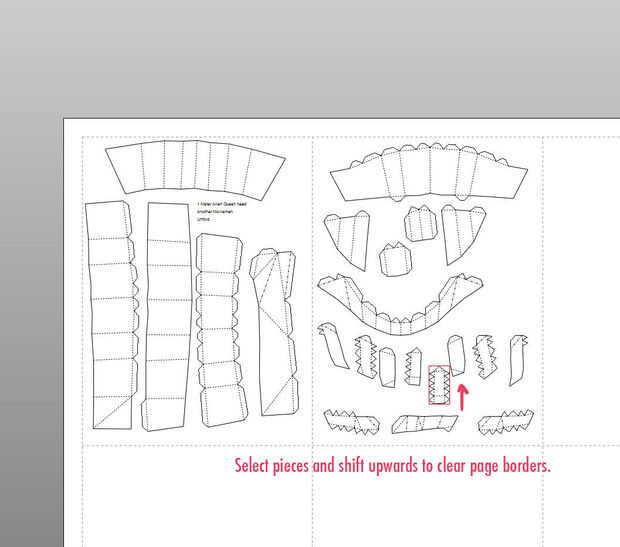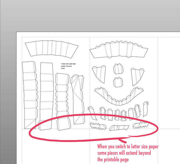 El archivo pepakura original fue creado en Europa, y así se configuran las piezas imprimibles para papel A4. Si trabajas en A4 de papel (primera foto), eres bueno para ir.