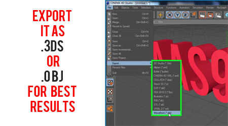 Después si has terminado tu modelo 3D de modelado, exportarlo como archivo. 3ds u obj para obtener mejores resultados
