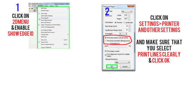 a continuación, haga clic en Configuración > impresora y otros parámetros y asegúrese de que ha seleccionado "Imprimir líneas clearly(Vector Print)" y clic "OK"