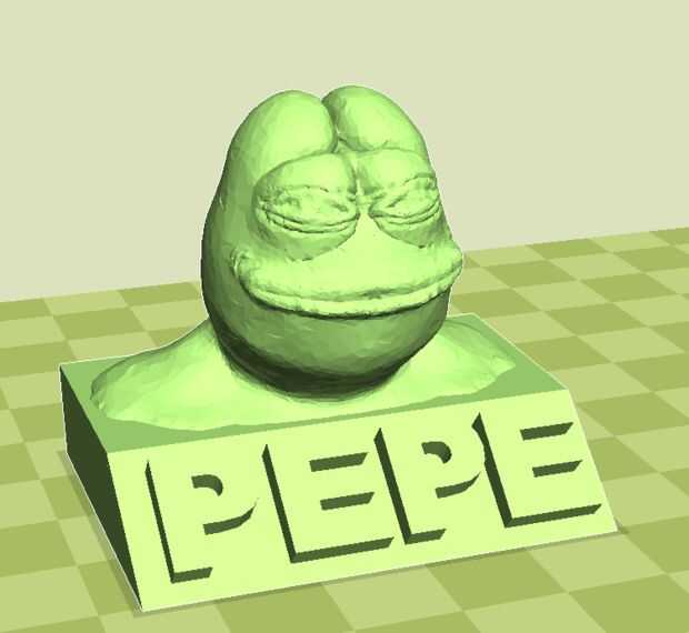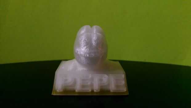 Si te estás preguntando por qué me decidí a hacer un busto de Pepe, bien para hacer el cuento largo un amigo mío es realmente en Pepe la rana y me desafiaron a modelo Pepe en menos de 30 minutos. Entonces abre el mezclador de malla y se puso a trabajar luego importados a tinkercad para crear la base y... ¡ BAM! Pepe la rana. el busto de la imagen se imprime en Taulman T-glase (si te estás preguntando por qué es como un color caramelo que es porque era de la impresión en PLA naranja antes y no purgar completamente la boquilla) mi configuración de impresión fueron 100 micras, boquilla 240 C, cama 60 C.