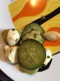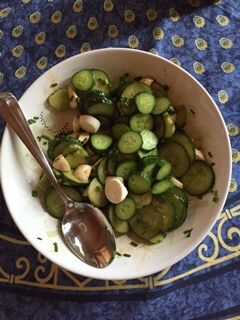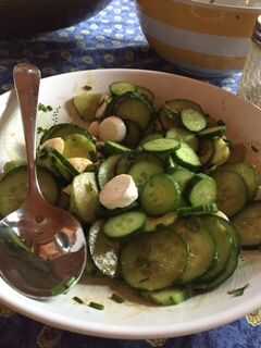 cosechado tantos pepinos de mi jardín ahora!Me decidí a hacer una rápido salmuera refrescante plato para el verano tardío.Receta1 pepino finamente rebanadopizca de salVinagre blanco 3 cucharaditasAzúcar blanca 2 cucharadas1) espolvorear una pizca de