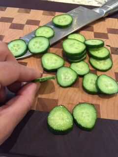 cosechado tantos pepinos de mi jardín ahora!Me decidí a hacer una rápido salmuera refrescante plato para el verano tardío.Receta1 pepino finamente rebanadopizca de salVinagre blanco 3 cucharaditasAzúcar blanca 2 cucharadas1) espolvorear una pizca de