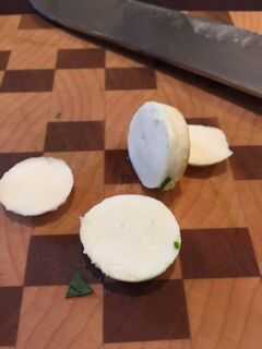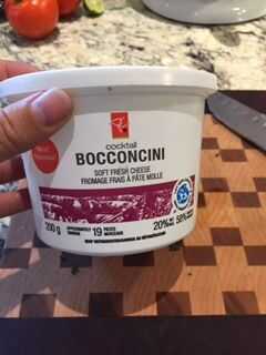 Podría dejar esta ensalada sin queso (lo que es vegano) y sólo tiene que añadir el aliño. Decidí cortar y añadir bocconcini. Cortar en rodajas finas como el pepino.