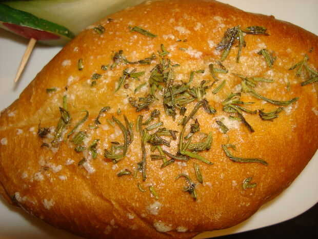 Dados de romero fresco y espolvorear por encima del pan