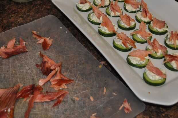 Pepino, salmón ahumado y queso crema/Steelhead (4 / 4 paso)