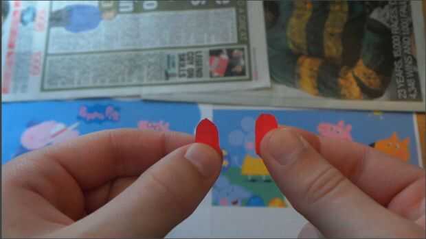 En primer lugar, vamos a crear las orejas! Tome el papel y cortar dos círculos de semi por orejas de peppa y repita los pasos de George. Color o pintar en color rosa y que es sus oídos hechos!