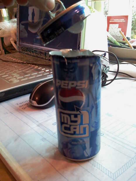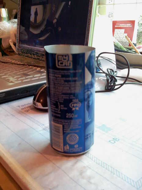 corte de la parte superior de la lata, mina terminó realmente irregular, así que otra vez con las tijeras para obtener un borde un corte... Esto evitará daños innecesarios a los dedos más adelante... te aconsejo que use guantes protectores cuando trabaje con latas de estaño o aluminio.