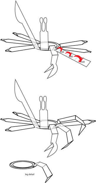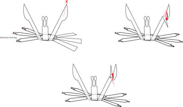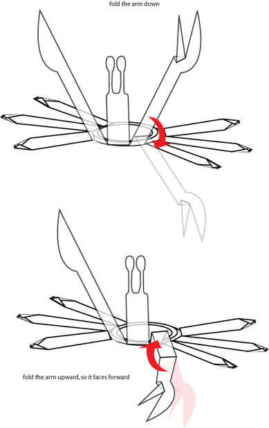 ahora los brazos... para los codos.. .fold en un ángulo, por lo que las garras de la cara hacia adelante