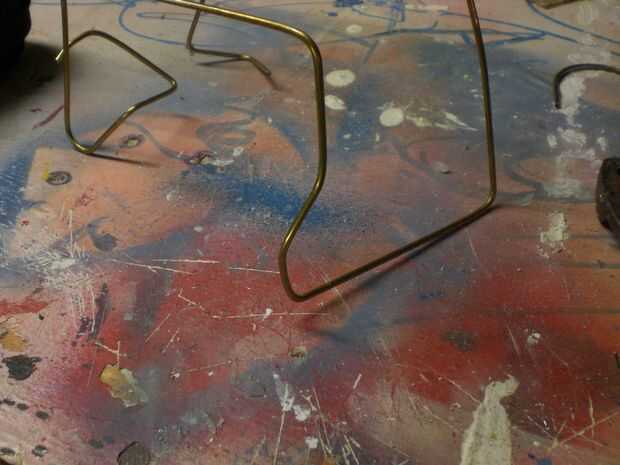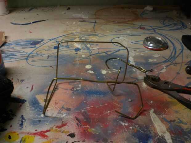 uso un pleirs de hangerand telas metálicas para que no apot doblando los extremos en las piernas mira las fotos para mejor ayuda. Utilizar estaño fiol y doblar los bordes de la th y deslice el soporte en pliegue entonces sobre los bordes pero deja espacio en la parte inferior para un hasta proyecto a venir a través de. Si usted está cocinando de una lata como algunos frijoles ponen largos clavos a través de como una rejilla.