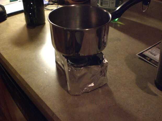 Bricolaje fácil y rápida sobre cómo hacer una cerveza vacía puede en un portable de la estufa.