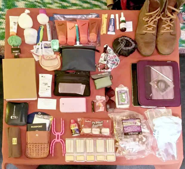 Utilizamos esto para mi esposos "personal item" en el plano con todas las tapas y su libro en él.