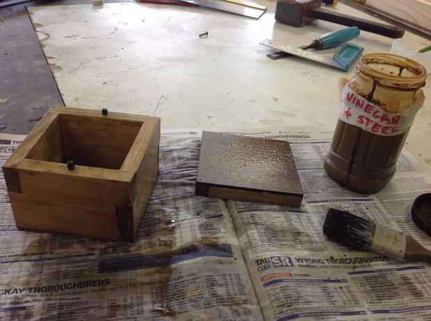 - Capa de vinagre blanco que ha tenido algunos leves acero sentados en él para una semana o así.