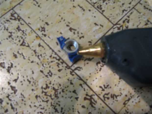 Tomar la tuerca pequeña del palillo y pega un trozo de tela sobre los tres lados de la tuerca.