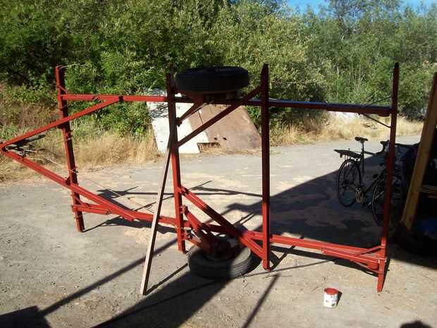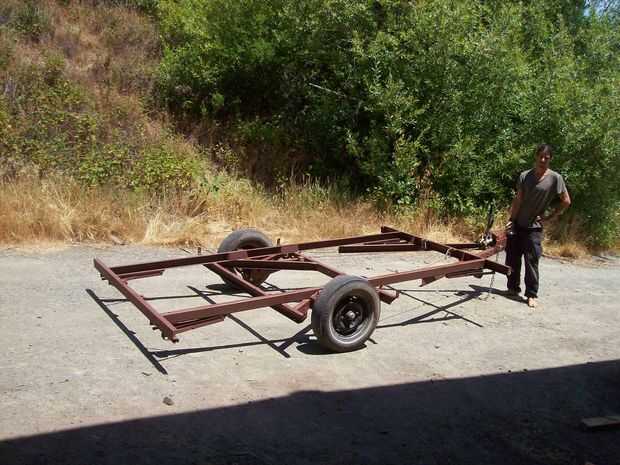 Como un viejo marco de trailer de aprovechar esto, empezamos por demoler el trailer, separar el aluminio para su reciclaje. El piso de madera contrachapada se guardó para volver a ser utilizado como el subsuelo. Luego nos fuimos en él con una amoladora y taladro con cepillos de rueda y alambre para el duro llegar a las partes. Como hemos eliminado la superficie oxidación y pintura vieja falla se buscaron signos de oxidación penetrante que sería necesario para mantener la integridad de la estructura de la soldadura. Afortunadamente, nos encontramos con ninguno.