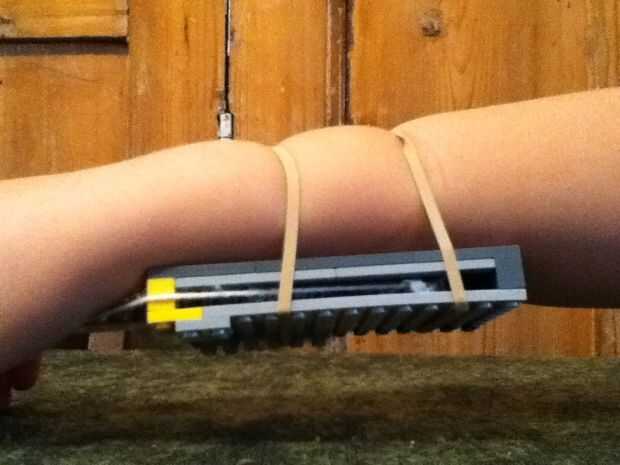 esto es una hoja oculta retractil. Todas las partes excepto la goma, llavero e hilo de rosca están disponibles en el juego de lego nxt 2.0. Por favor ignorar el color de las partes. ¡ Disfrute!Paso 1: El cuerpo This part will be strapped onto your ha