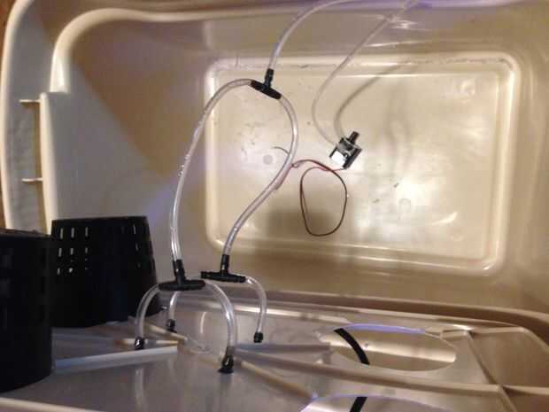 Yo es probable que se corte la longitud de la tubería hacia abajo. El menos tubo que utilizas aumentarán la velocidad de flujo. Asegúrese de cortar los tubos de igual longitud o recibirá las tasas de flujo diferentes de los goteros. Os adjunto la bomba a la tubería pero tengo que soldar mas cables a la bomba y aumentar la longitud.