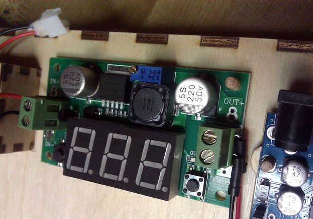 Originalmente quería montar el regulador de potencia con cinta de pegar, pero decidido a montarlo en la misma forma que el Arduino. Colocar el regulador y me perforó un 1/8" agujero usando los agujeros de montaje es como una guía. Antes de perforar el segundo orificio había insertado un taco en el primer hoyo, luego inserta otro pasador en el segundo agujero antes de taladrar los otros dos. Se trata de la mejor manera de obtener todos los agujeros en la posición correcta.