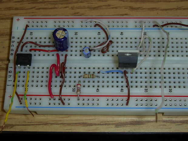 También: Asegúrese de poner el condensador de la manera correcta. El lado con la raya es la parte que debe poner a la tensión más negativa. Sólo he visto una vez, pero cuando un condensador electrolítico al revés, puede explotar.