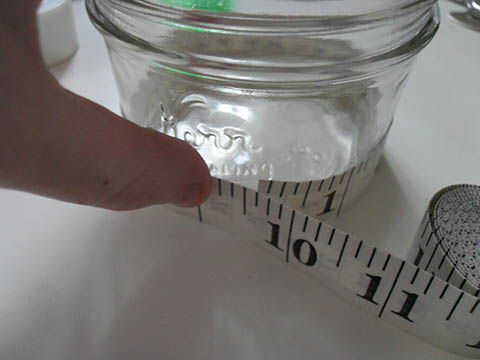 Medir la circunferencia de tu jarra. Usamos la cinta métrica flexible, envolver alrededor de la jarra hasta que.25 superposición. El interior de la jarra en realidad será un poco menor que su número final, pero se 's mejor que un poco extra que no es suficiente.