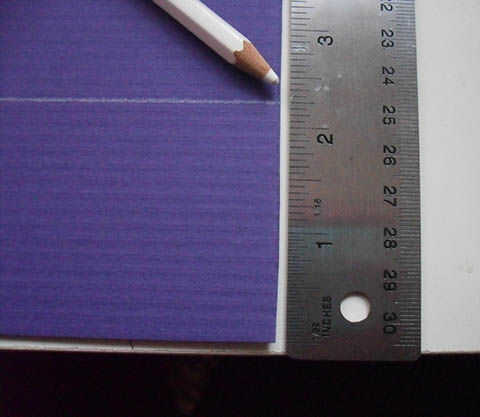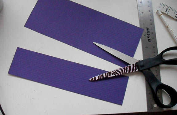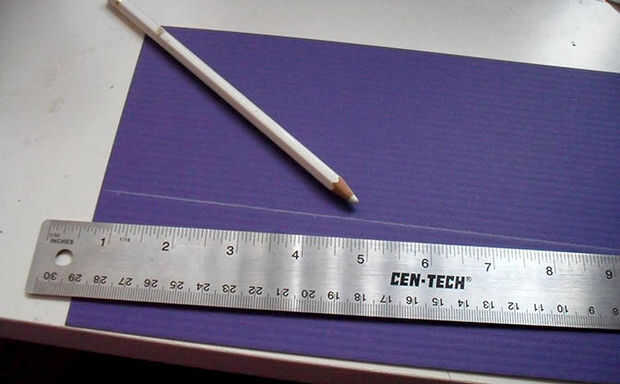 Medir un rectángulo largo en su papel de color oscuro, usando la regla y el lápiz de marca blanca. En mi caso, el rectángulo fue 2,25 pulgadas x 10 pulgadas.