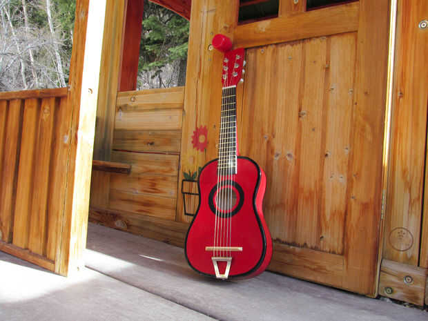 hacer una pequeña guitarra en algo útil, como un Banjo!Todos juegan banjo! Los seres humanos nacen con él!Apenas rasguear las cuerdas al aire de un banjo. Es un acorde de G. Todos los acordes principales son un dedo todo recto. Ya sabes 300 canciones
