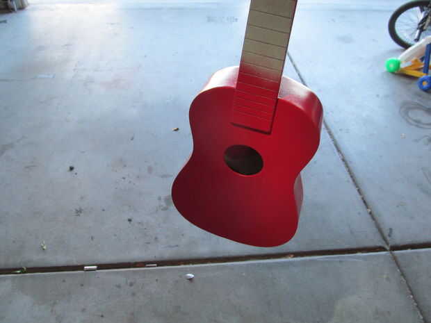 hacer una pequeña guitarra en algo útil, como un Banjo!Todos juegan banjo! Los seres humanos nacen con él!Apenas rasguear las cuerdas al aire de un banjo. Es un acorde de G. Todos los acordes principales son un dedo todo recto. Ya sabes 300 canciones