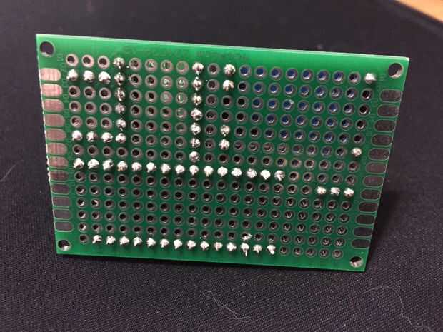 Por soldadura Rúbrica femenina pasadores para el prototipo PCB board, todos los componentes simplemente "enchufe", y todos mis circuitos se suelda en la parte inferior de la Junta usando cable de imán de la bobina.