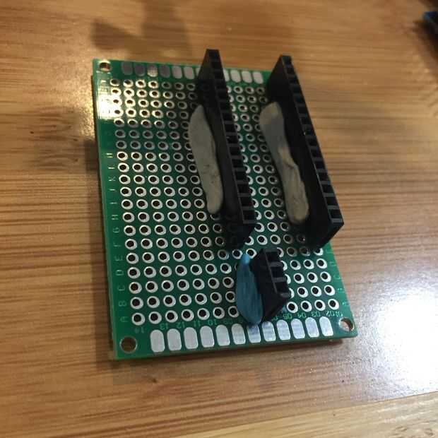 Usted notará en las fotos del prototipo aquí que hay unos extra en el tablero no utilizado por los componentes primarios, éstos se utilizan para sostener los diodos y las resistencias en mi proyecto final que no entro aquí. Me gusta usar las cabeceras para todos los componentes como hace realmente fácil de intercambiar componentes o reclamarles cuando he terminado con el proyecto.